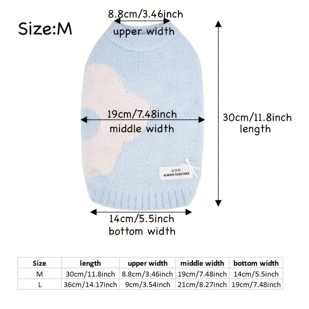 Wrap your furry friend in softness and style with this adorable knit sweater featuring a floral pattern and "Always Together" patch. Designed for warmth and flexibility, this sleeveless sweater is perfect for cooler days indoors or out.