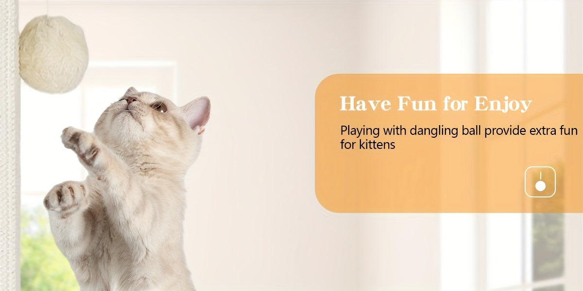 Give your cat the ultimate spot to scratch, stretch, and play with this tall sisal scratching post. Standing tall with a 40cm × 40cm plush-covered base for stability, this post is wrapped in durable sisal to keep claws healthy and protect your furniture. The hanging plush ball adds interactive fun, while the top provides a comfy perch for resting.